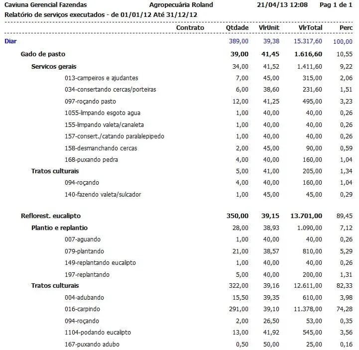 🔹 Calcular as horas trabalhadas e o custo/hora de cada serviço e atividade.